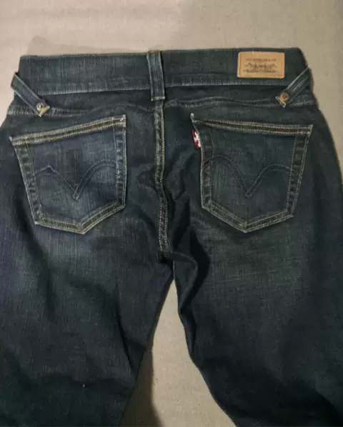Pantalón Levis de mezclilla talla 7, corte a la cadera que resalta la pompis, pierna pegada y pata un poco ancha.