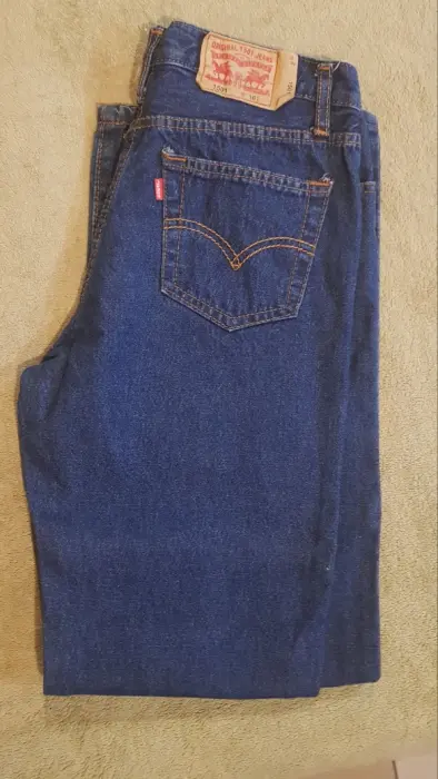 Pantalon de mezclilla corte pierna recto, con bolsas enfrente y parte trasera. Imitación, nuevo sin etiqueta.