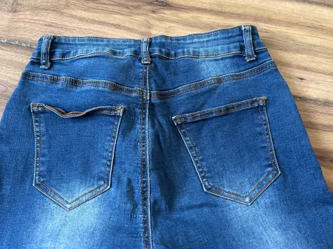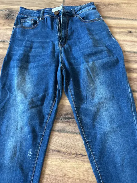 Pantalón de mezclilla skinny. Pantalón de mezclilla skinny, desgastado de la parte alta de las piernas adelante y atrás, talla 3/4