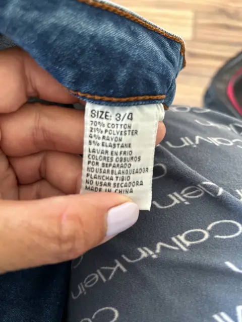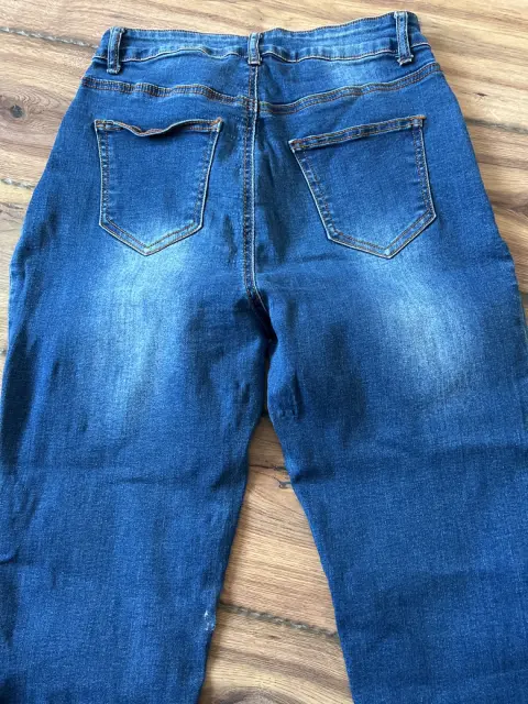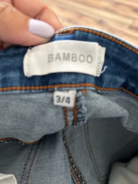 Pantalón de mezclilla skinny, desgastado de la parte alta de las piernas adelante y atrás, talla 3/4