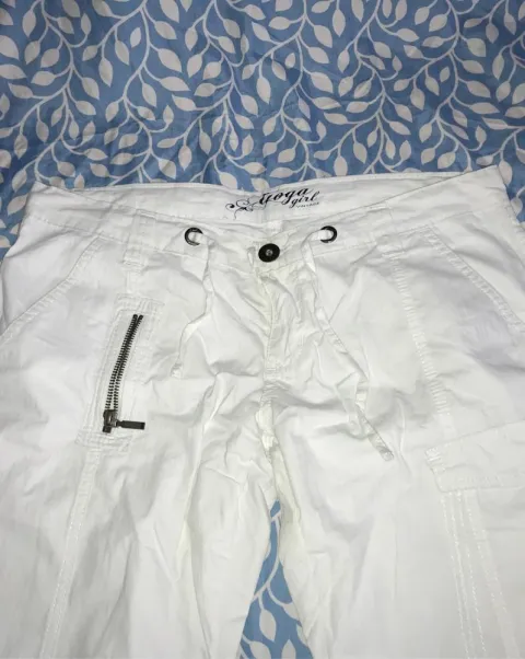 Pantalón blanco, recto, esta nuevo sin etiquetas no tiene ningún detalle, es de tela fresca y algo delgada marca goga, talla 11(L)