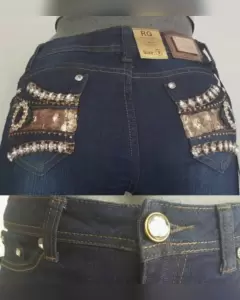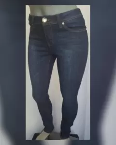 Pantalón mezclilla stretch tipo extreme fashion skinny, color AZUL PROFUNDO, cierre p/cremallera y botonadura de fantasía, 2 bolsos frontales y 1 mini bolso c/aplique bisutería translúcida, trabillas en cintura, 2 bolsillos traseros c/detalles bisuteria translúcida y lentejuela tono dorado en bolsas traseras y placa dorada c/el logo de la marca c/aplique de bisutería tono translúcido en zona cintura trasera. Talla 9 (fiel a su talla). Dimensiones cms: 36.5 cintura, 23.5 tiro, 43 cadera, 24 pierna, 100 largo. 80% algodón, 17% poliéster, 3% elastano. Para lavado en casa.