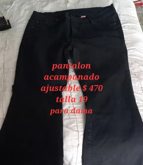 Pantalon dama ajustable,se ajusta comodamente a tu cuerpo,acampanado,color negro,bolsas traseras y delanteras,talla 19