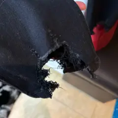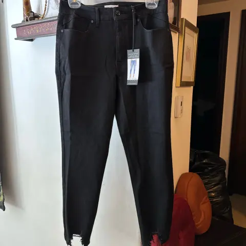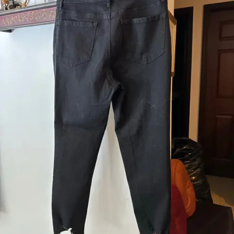 Pantalón Sofía Vergara. Roto de abajo, termina en tubo, talle alto, mide 40cm de lado a lado y 96cm de largo, talla 6