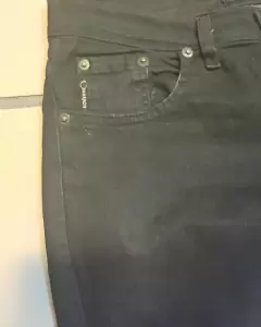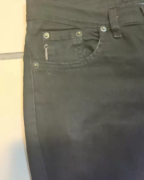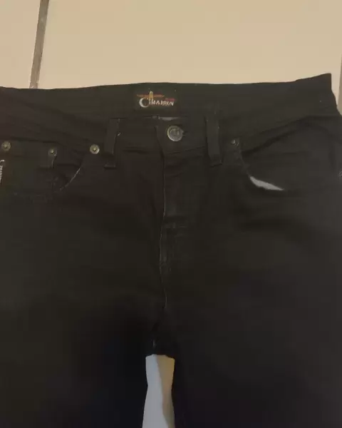 Pantalon vaquero negro de mezclilla talla 7, marca cimarron, con bolsas adelante y atras, corte recto