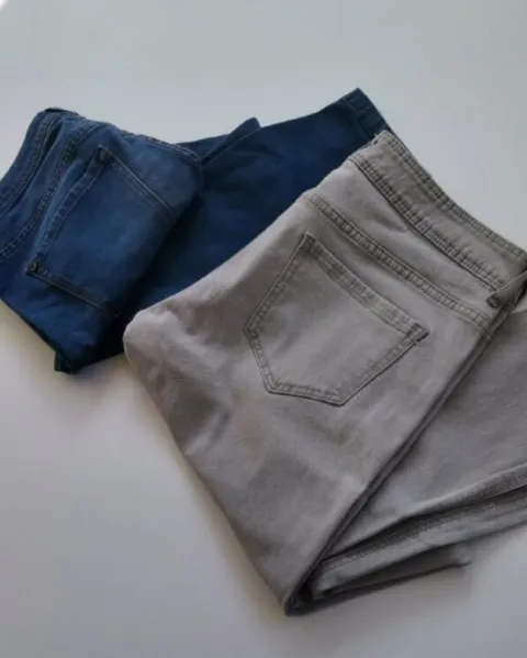 Dos pantalones de mezclilla, en super buen estado talla 26, color gris muy clarito y azul
