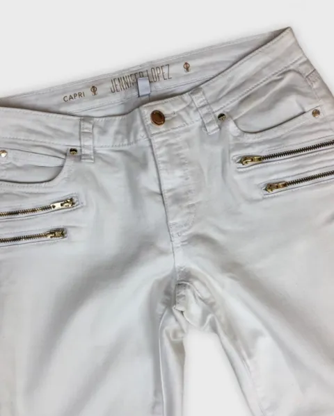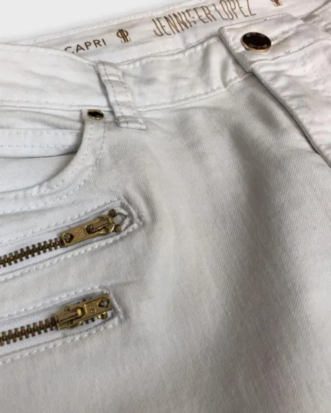 Jeans Capri blancos Jennifer Lopez, con cierres al frente que le dan un toque súper fashion, te encantarán son talla 4 pero ajustan perfecto a talla M.