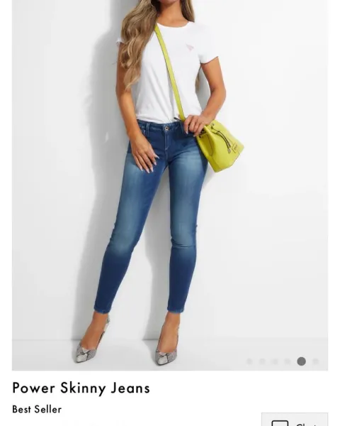Power skinny jeans Guess. Talla: 24, ajuste a la cadera.Medidas: 30 cm de cintura, 34 cm de cadera, 16.5 cm de tiro y 74 cm de entrepierna. Sin detalles.