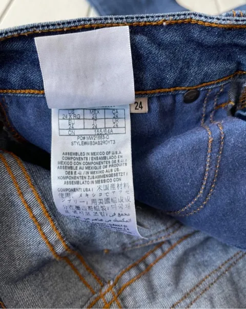 Talla: 24, ajuste a la cadera.Medidas: 30 cm de cintura, 34 cm de cadera, 16.5 cm de tiro y 74 cm de entrepierna. Sin detalles.