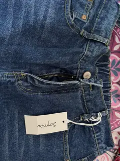 Pantalón con ETIQUETA Marca surprise, tipo mom jeans Talla mediana, con resorte en la parte de atrás Rasgado de la parte de enfrente