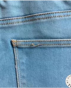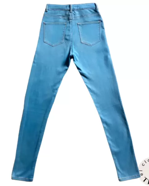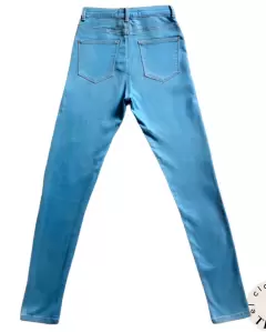 Skinny jeans azul claro. * Corte skinny, cintura súper alta* Queda a talla 26 MEX, estira ligeramente * Color azul claro con subtono gris* Largo completo* Mezclilla de sensación suave* La costura de la bolsa de la pierna derecha trasera está descosida 2 cm, no afecta su uso (foto 5)* Con mucha vida útil, muy combinable y versátil * Medidas sin estirar: cintura 31, cadera 41, largo 100, tiro 32