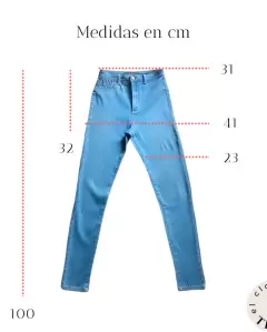 * Corte skinny, cintura súper alta* Queda a talla 26 MEX, estira ligeramente * Color azul claro con subtono gris* Largo completo* Mezclilla de sensación suave* La costura de la bolsa de la pierna derecha trasera está descosida 2 cm, no afecta su uso (foto 5)* Con mucha vida útil, muy combinable y versátil * Medidas sin estirar: cintura 31, cadera 41, largo 100, tiro 32