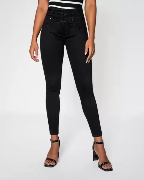 Studio F Nuevo Talla 12 Colombia Negro Strech. Pantalon Marca Studio F colombiano Talla 12 Colombia, nuevo con etiquetas, es strech se amolda al cuerpo y corte push up o botton up levantacola levantapompas.Es de una mezclilla muy suave al tacto, 4 botones plateados y no tiene bolsas.