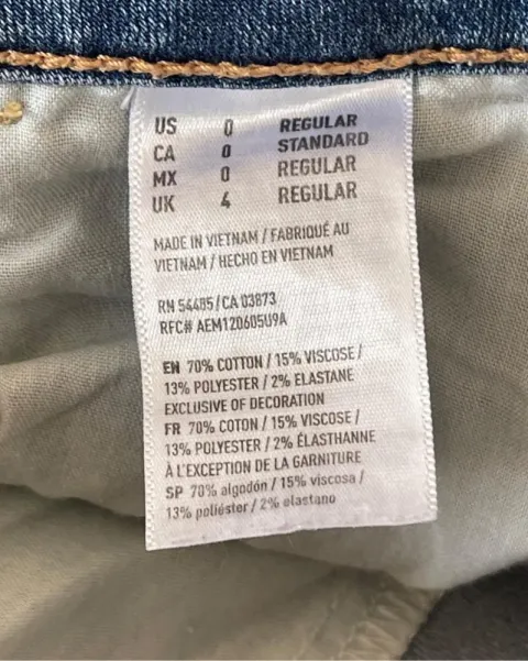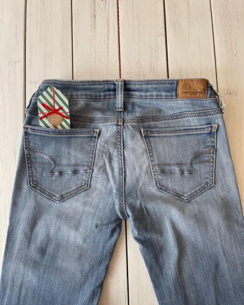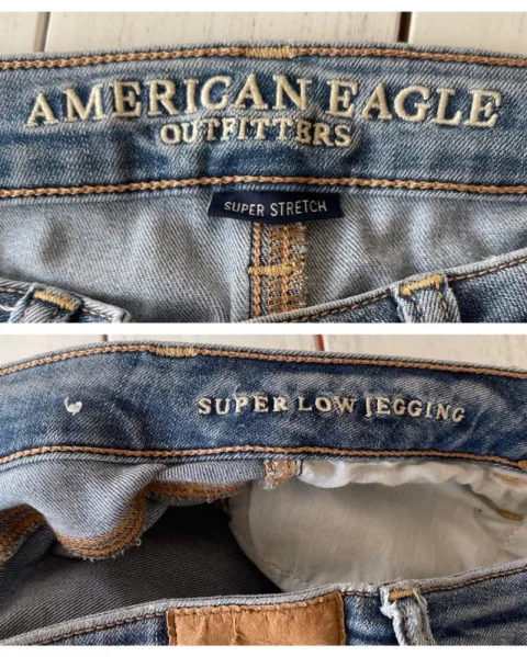 Súper low jeggin American Eagle. Talla: 0 REGULARMedidas: 31.5 cm de cintura, 17.5 cm de tiro, 32 cm de cadera de costura a costura y 38.5 cm cómo está el pantalón. Tiro corto, stretch y sin detalles.Ajuste a la cadera.