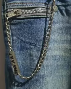 Pantalon de mezclilla, deslavado., tiene cadena en el bolso derecho . Es una edición especial de sexy jeans Solo le falta en boton de enfrente.