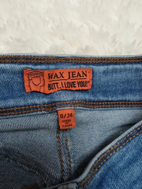 Wax Jean - Jeans ajustados de talle alto para mujer, azul clarotalla:0/24 (XS).Medidas: 87 cm de largo,58 cm de ancho en cintura, 74 cm de ancho en caderas, 38 cm de ancho en piernas. Es strech.Materiales: 93% algodón, 5% poliéster y 2% spandex.Usado en buen estado.