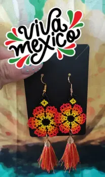 2 por $200 🇲🇽 Aretes artesanales flor naranja