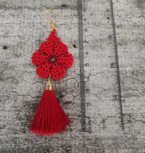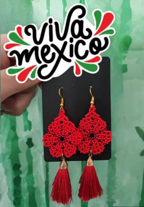 2 por $200 🇲🇽 Aretes artesanales flor rojo. *2 por $200 compra estos artes y llévate otro producto de mi muro con la misma promoción por $200 y aprovecha el envío gratis!!💚🤍❤️ Aretes artesanales de chaquiras hechos a mano, en forma de flores y pompones de hilo se seda, excelentes para lucir este 15 de septiembre 🎉Material chaquirasMedidas en imágenes Más modelos en mi clóset