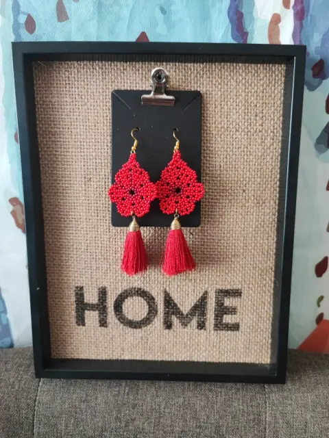 2 por $200 🇲🇽 Aretes artesanales flor rojo