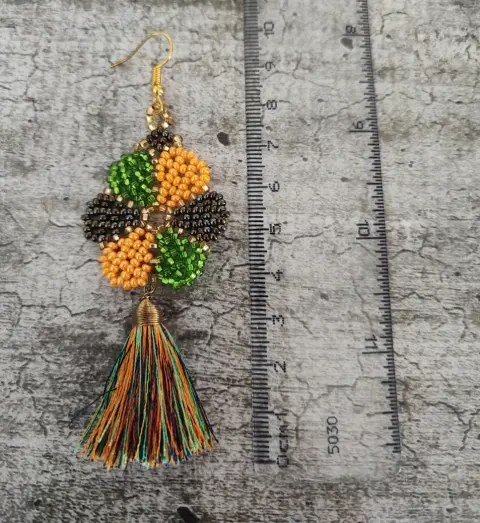 *2 por $200 compra estos artes y llévate otro producto de mi muro con la misma promoción por $200 y aprovecha el envío gratis!!💚🤍❤️ Aretes artesanales de chaquiras hechos a mano, en forma de flores y pompones de hilo se seda, excelentes para lucir este 15 de septiembre 🎉Material chaquirasMedidas en imágenes Más modelos en mi clóset