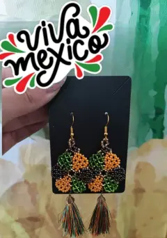 2 por $200 🇲🇽 Aretes artesanales flor verde. *2 por $200 compra estos artes y llévate otro producto de mi muro con la misma promoción por $200 y aprovecha el envío gratis!!💚🤍❤️ Aretes artesanales de chaquiras hechos a mano, en forma de flores y pompones de hilo se seda, excelentes para lucir este 15 de septiembre 🎉Material chaquirasMedidas en imágenes Más modelos en mi clóset