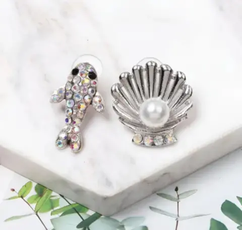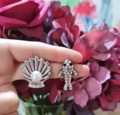 *2 por $200 compra estos aretes y llévate otro producto de mi muro con la misma promoción por $200 y aprovecha el envío gratis!!*Aretes concha con perla y pez*Material aleaciones*Medidas en imágenes