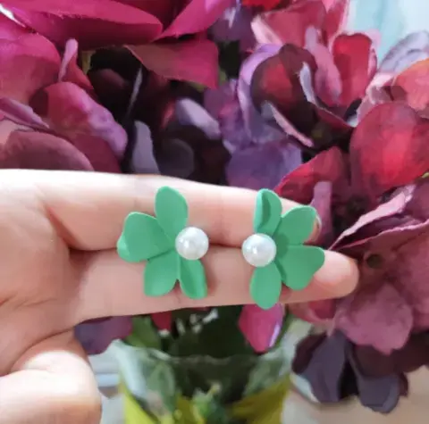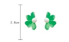 2 por $200 Aretes flores verdes con perlita. *2 por $200 compra estas pulseras y llévate otro producto de mi muro con la misma promoción por $200 y aprovecha el envío gratis!!Aretes en forma flores verde con perlita sintética con poste ó aguja de plata S925Material resina Medidas en imágenes