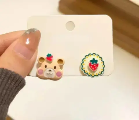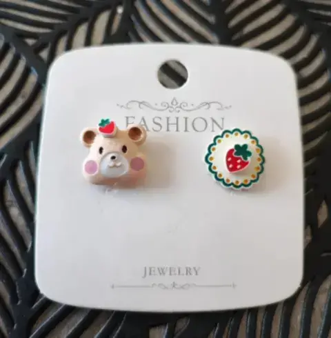 *2 por $200 compra estos aretes y llévate otro producto de mi muro con la misma promoción por $200 y aprovecha el envío gratis!!*Aretes en forma de cara de oso y fresa.*Material resina*Medidas en imágenes