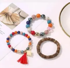 *2 por $200 compra estas pulseras y llévate otro producto de mi muro con la misma promoción por $200 y aprovecha el envío gratis!!Pulsera elástica estilo bohemio con dije de elefante con cuentas de madera y piedras sintéticas color roja multicolor.📿Medidas en imágenes📿Material cuentas