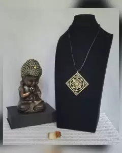 Collar con medallón de mandala en madera (no es MDF) laqueada tono DORADO y cordón encerado autoregulable. MEDIDAS CMS: 8.5 x 8.5 mandala, desde 41.5 hasta 77 cordón.***CÓDIGO: MANDALAS#***ESTA PROMO SOLO APLICA PARA PIEZAS MARCADAS CON EL MISMO CÓDIGO***PRECIO NO NEGOCIABLE*** Por favor, no regatees, este producto es elaborado por personas que perdieron su empleo y su venta les ayuda a llevar el sustento a su familia. ¡Ayúdame a ayudarlos!***Mandala es una estructura de diseños concéntricos que representan la composición fractal o repetitiva del universo y de la naturaleza. Mandala es una palabra de origen sánscrito y significa ‘círculo’; representa la unidad, la armonía y la infinitud del universo mediante el equilibrio de los elementos visuales. Estos tienen como objetivo el cese del pensamiento y de la mente, aspirando alcanzar un estado meditativo. Los hindúes fueron los primeros en usar mandalas como un instrumento espiritual, aunque se han popularizado en occidente por los diseños y usos atribuidos al budismo. Sin embargo, los mandalas no han sido exclusivos del oriente o de una religión en particular, ya que se han encontrado representaciones geométricas similares en otras culturas y con diferentes usos que van más allá de lo espiritual. En Tíbet son conocidas los mandalas de arena, que son complejas representaciones elaboradas por monjes budistas tibetanos como ejercicio espiritual para aprender lecciones sobre el desapego y el fluir universal. Para hacerlos se utiliza arena o piedras trituradas y coloreadas de manera natural. El diseño del mandala se divide en cuatro cuadrantes y un monje está a cargo de cada uno. Después de días o semanas de completar el diseño (rellenando los espacios con la arena coloreada), el mandala es destruido por los monjes para representar la finitud de todas las cosas. La arena es barrida,
