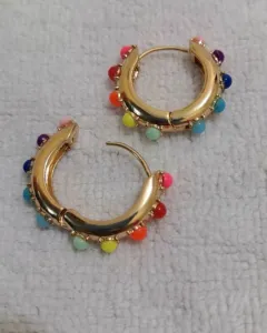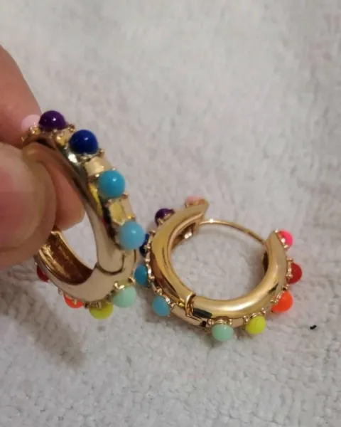 Nuevas y lindas arracadas!Con perlitas de colores y de color natural, el broche es de aclaje no se abre fácilmente.