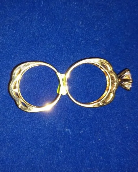 Hermosa alianza de chapa de oro de excelente calidad, #6 1/2, puedes utilizarla junta o separada, luce maravillosa junta o separada.