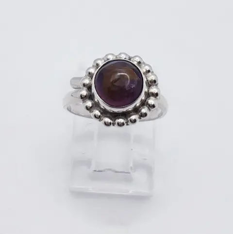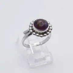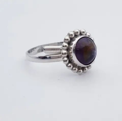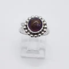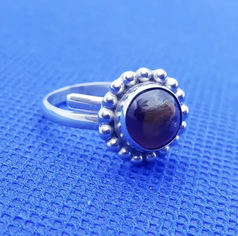 Anillo con piedra natural• Elaborado en plata fina ley .925• Piedra natural de Cuarzo Amatista• Anilleta ajustable a tallas de la 6.5 a la 9.Muchas gracias por elegir y apoyar lo hecho en México.