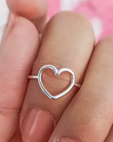 Anillo Corazón Minimalista. Femenino anillo, básico en cualquier look♡Plata de Ley .925 con baño de rodio♡Talla #8 (unico por el momento)