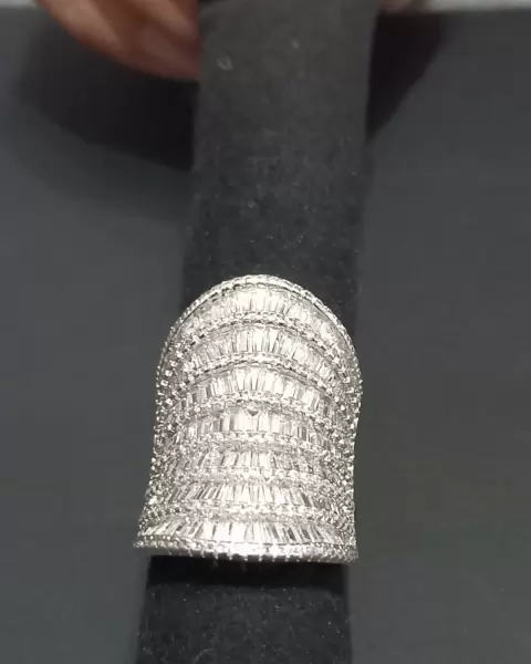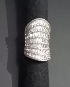 Anillo corte baguete. Anillo alto, corte baguete, en acero con baño de rodio, cristales austriacos, talla 7