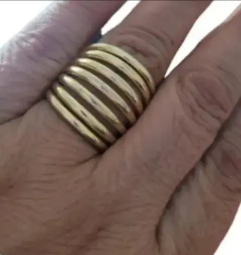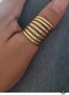 Anillo de acero inoxidable laminado. Sexy anillo de acero inoxidable delicadamente laminado en chapa de oro con multiples bandas para dar una imprecion de personalidad sexy pero firme ajustable a cualquier dedo de la mano, muy practico para cualquier tipo de outfit llevalo en el dedo pulgar o en el que tu decidas nuevo a estrenar en caja cuadrada pide el tuyo hoy mismo