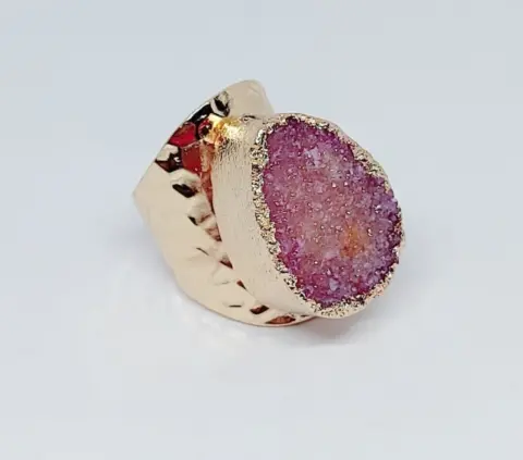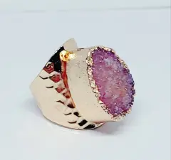 Anillo de cuarzo rosa. Lindo anillo de acero inoxidable y de cuarzo rosa . Es ajustable