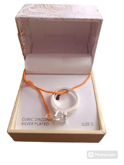 ANILLO NUMERO 5, CON CUBOS DE ZIRCONIA,PLATEADO,MARCA CHARTER CLUB