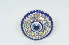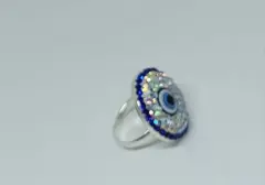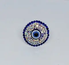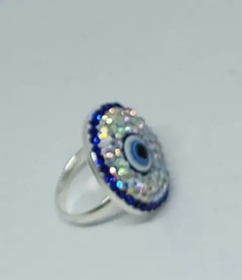 Anillo de ojo turco con cristales. Lindo anillo de baño de plata con cristales de ojo turco , es ajustable , brilla mucho