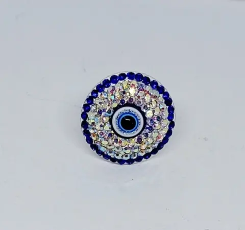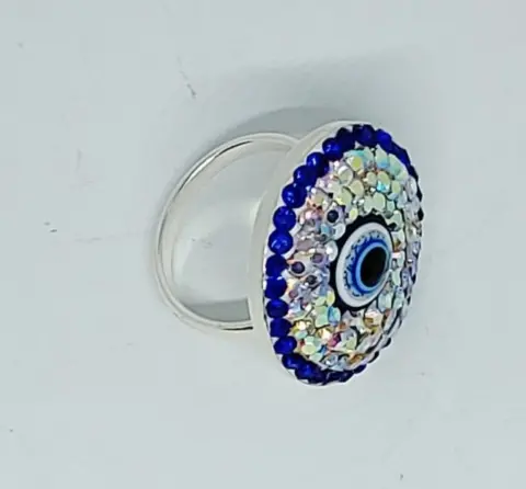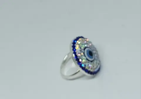 Lindo anillo de baño de plata con cristales de ojo turco , es ajustable , brilla mucho