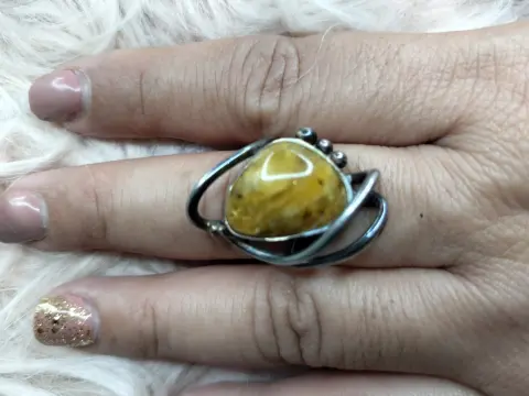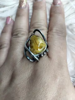 Anillo de plata ley 925 y ámbar lechoso. Anillo de plata ley 925 y ámbar lechoso (uno de los colores más valiosos dentro del ámbar por ser únicos) El ámbar es una gema que se consigue en pocas partes del mundo, entre ellos México (En el estado sureño de Chiapas)