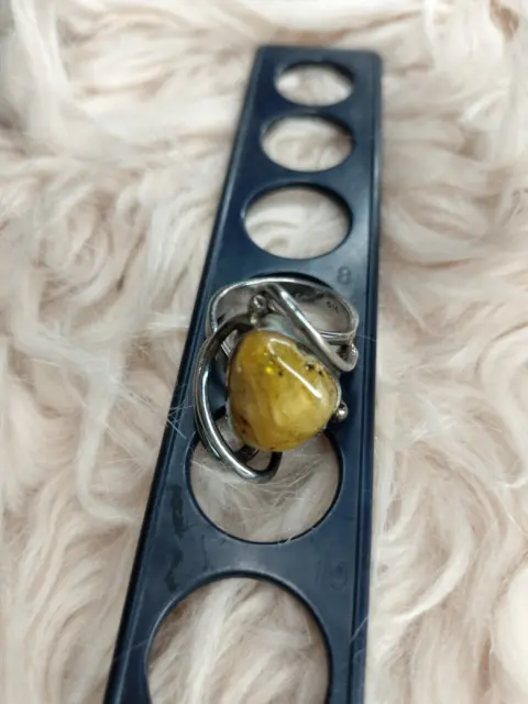 Anillo de plata ley 925 y ámbar lechoso
