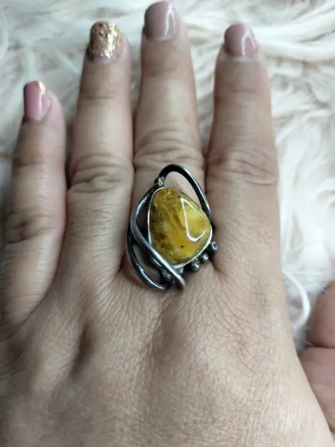 Anillo de plata ley 925 y ámbar lechoso (uno de los colores más valiosos dentro del ámbar por ser únicos) El ámbar es una gema que se consigue en pocas partes del mundo, entre ellos México (En el estado sureño de Chiapas)
