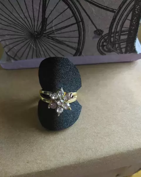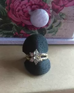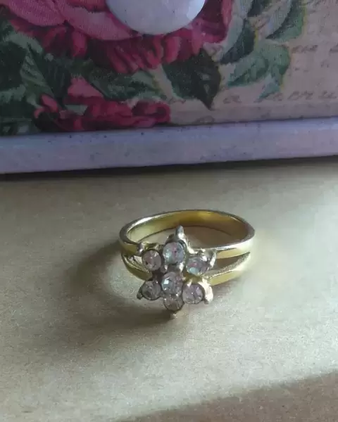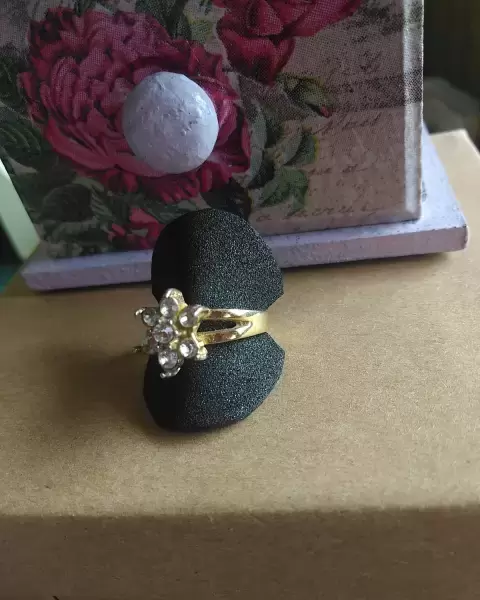 Anillo en forma de flor.. Lindo anillo en forma de flor y siete piedras. Anillo de piedras sintéticas color cristal, bañado en oro. No. 5. Mide 15 mm de diámetro. Ideal para regalo de aniversario, cumpleaños, graduación u ocasion especial. 💍Si te gusta otro artículo de mi clóset, te puedo armar un paquete!!
