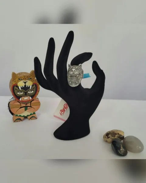 Anillo estilo sello en plata ley .924 modelo Guerrero Jaguar AUTOAJUSTABLE (ideal para talla 7, 7.5, 8). Lacrado c/el nombre de la marca y quintado.***Edición especial de Joyerías Villareal*** UNITALLA. Dimensiones cms: 2.5 x 5