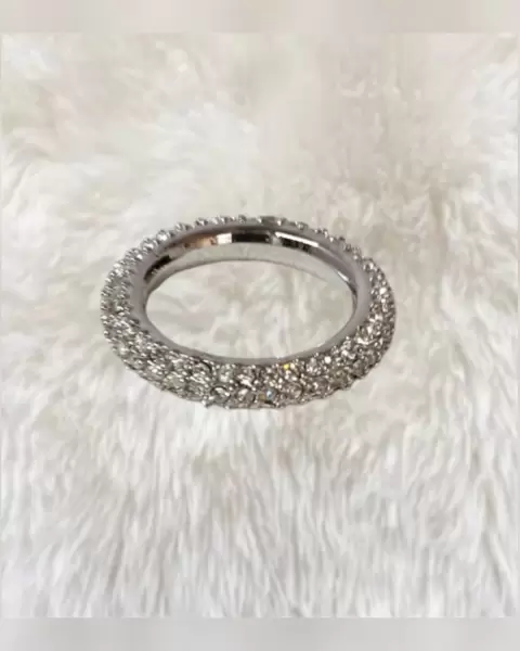 Anillo estilo Alianza sin Fin. Anillo joyería fina tono PLATA BRILLANTE c/baño de rodio y circonias translúcidas. Talla 7. Aleación zinc c/baño de rodio. Dimensiones cms: 2.2 circunferencia***PRECIO NO NEGOCIABLE***
