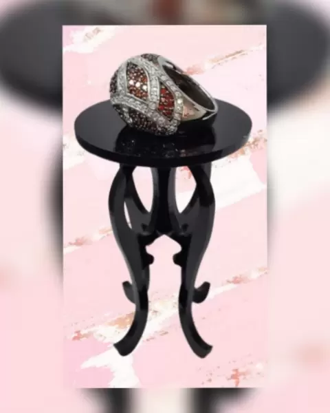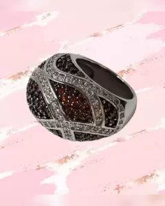 Anillo joyería fina tono PLATA BRILLANTE c/baño de rodio y circonias color RUBÍ/TRANSLÚCIDA estilo Art of Time. Talla 7. Aleación zinc c/baño de rodio. Dimensiones cms: 5.5 x 3***PRECIO NO NEGOCIABLE***