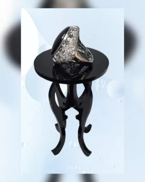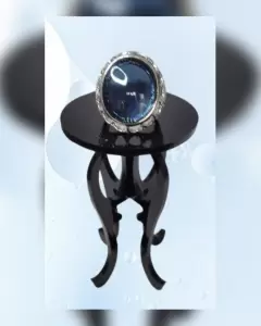 Anillo estilo Halo c/baño de Rodio. Anillo joyería fina tono PLATA BRILLANTE c/baño de rodio, piedra sintética AZUL ZAFIRO y circonias translúcidas. Talla 7. Aleación zinc c/baño de rodio. Dimensiones cms: 2.5 x 2.2***PRECIO NO NEGOCIABLE***