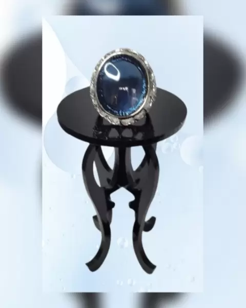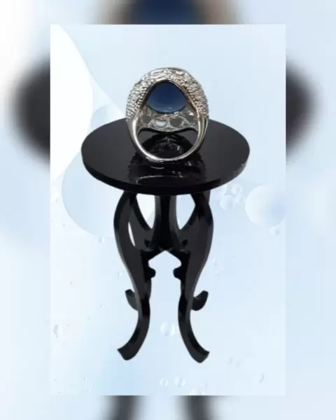 Anillo joyería fina tono PLATA BRILLANTE c/baño de rodio, piedra sintética AZUL ZAFIRO y circonias translúcidas. Talla 7. Aleación zinc c/baño de rodio. Dimensiones cms: 2.5 x 2.2***PRECIO NO NEGOCIABLE***