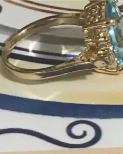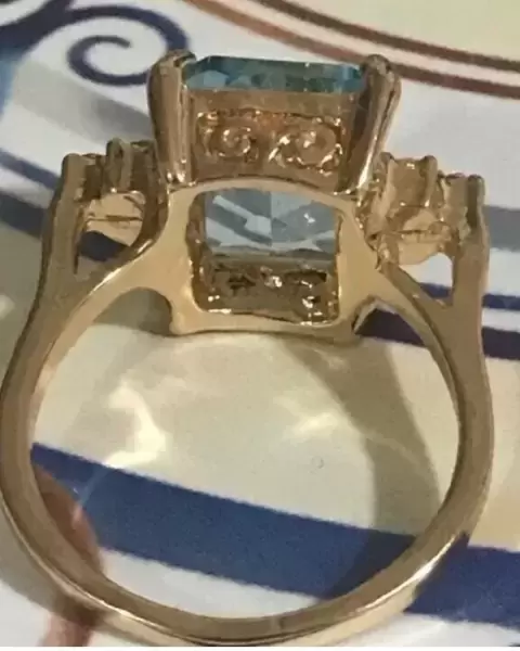 Anillo chapa de oro con piedra natural aguamarina y zirconias, talla 9Mx a estrenar con etiqueta. No acepto pagos dé Oxxo. Solo transferencias